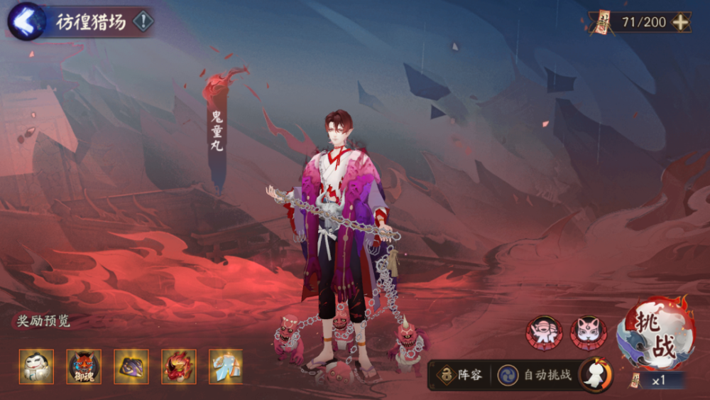 该玩法通过不断与鬼童丸进行战斗,获取活动积分与奖励。