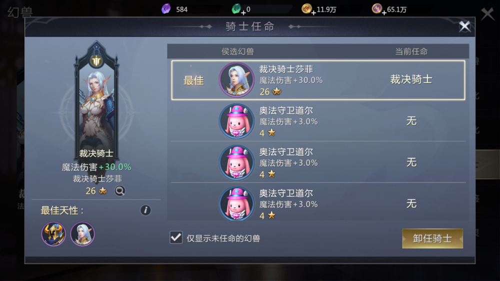 作为所有人都可以免费获得的裁决骑士,他们的实力并不差,物攻为主的职业可以获得裁决骑士凯隆,魔攻为主的职业可以获得裁决骑士莎菲,可以为小伙伴们提供不错的本职业的属性支援,并提升玩家角色的实力,不过实际上使用他们的人却并不是很多。其原因在于大多数人基本上都不知道该怎么养成裁决骑士。毕竟作为无法直接获得副宠蛋的裁决骑士,想要给他们升星的难度不亚于其他稀有的幻兽了,横向一对比稀有度,大多数人都会选择使用其他的幻兽。