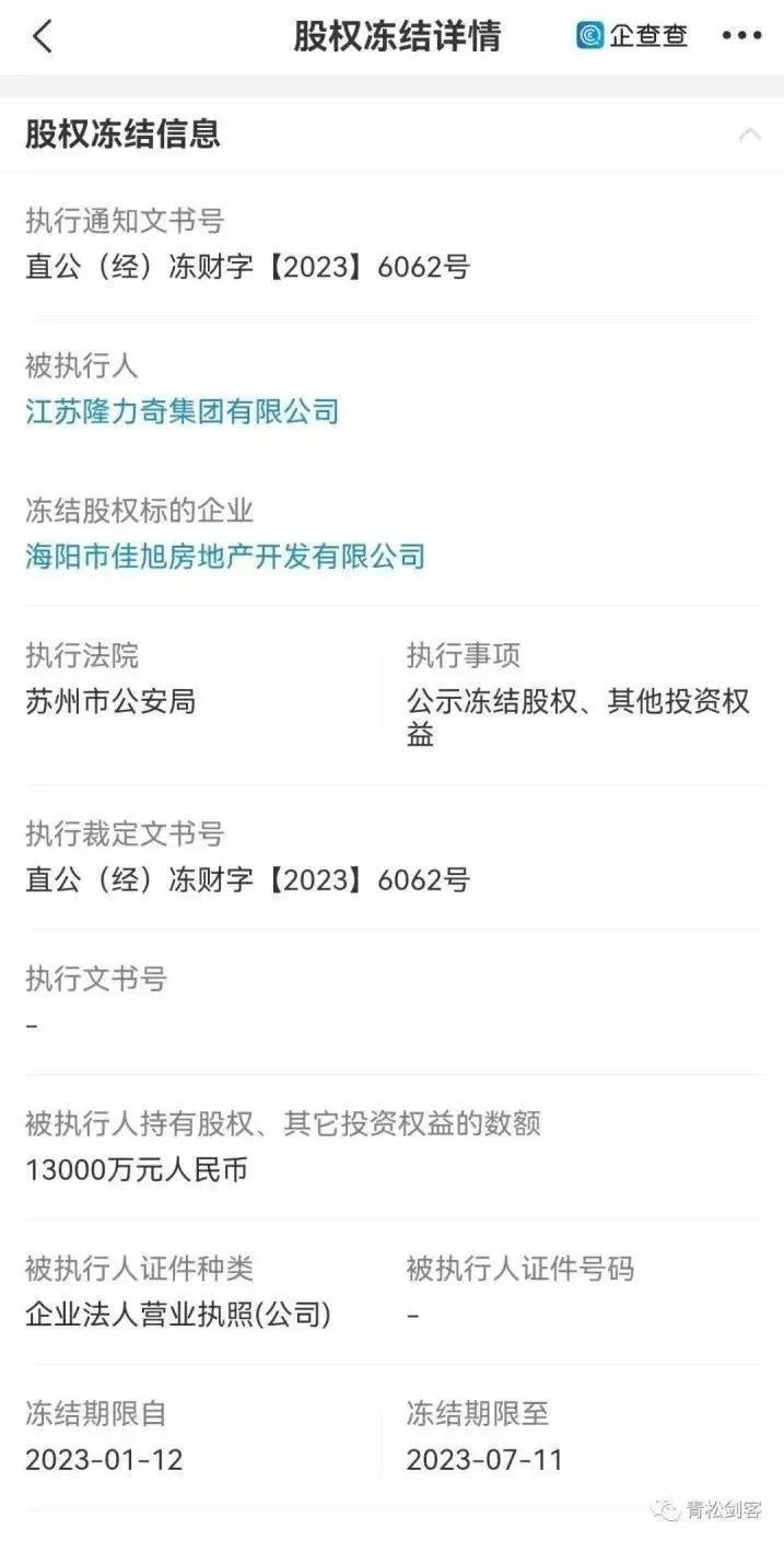 徐之伟出事的同一天,隆力奇两家相关投资企业的1.5亿股权也被苏州公安局经侦冻结了。