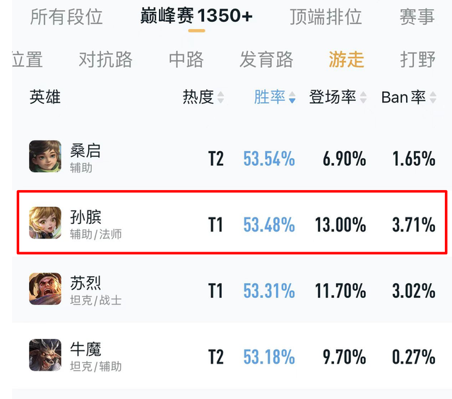 手机访问:wap.265xx.com孙膑胜率在辅助排T0?巅峰赛登场率超高,王者最低调的英雄