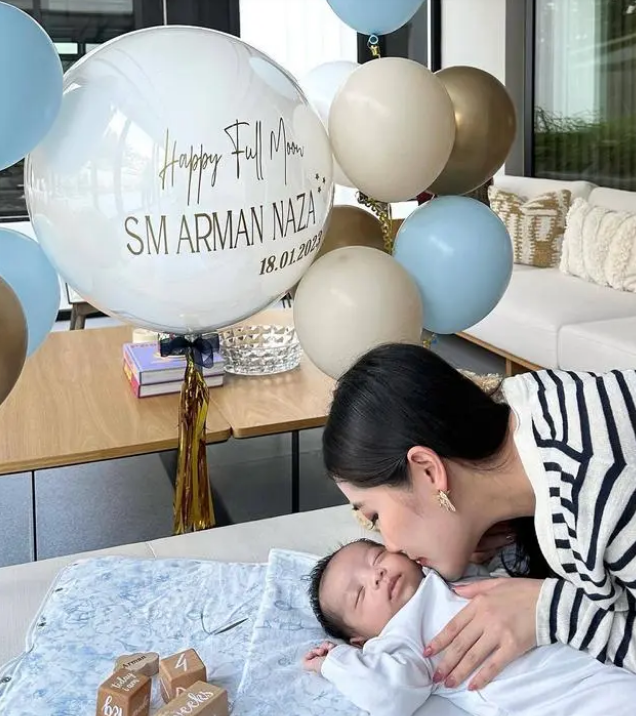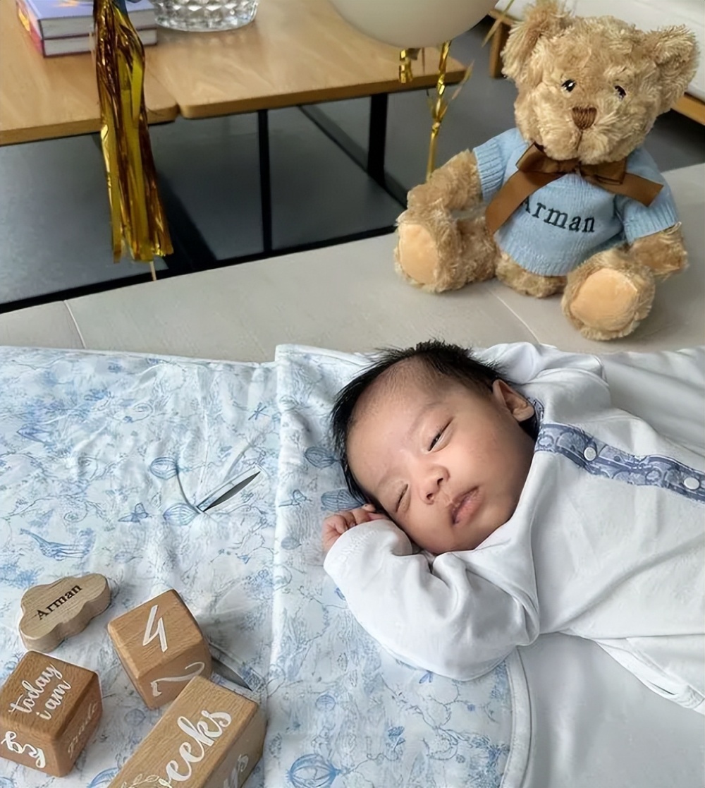 近日赌王千金何超盈的干儿子举办了盛大的满月派对,作为孩子母亲的陈雪铃更是通过社交平台晒出了当天的照片,发文庆祝自己的儿子已经满月了,从曝光的画面看,孩子穿着白色的套装安静的睡在沙发上,像极了陈雪铃的富豪丈夫,混血感十足。这次举办派对的地方正是自家的豪宅,只见大厅布满了气球,很有氛围感。