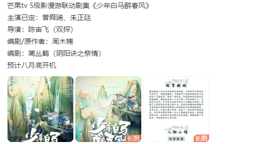 除此之外有网友爆料称,这部剧的主角已经确定。两位男主分别是曾舜晞和朱正廷,从这个搭配来看,《少年白马醉春风》还是有一些看点的。根据主演名单来看,此次应该是曾舜晞和朱正廷第一次合作。