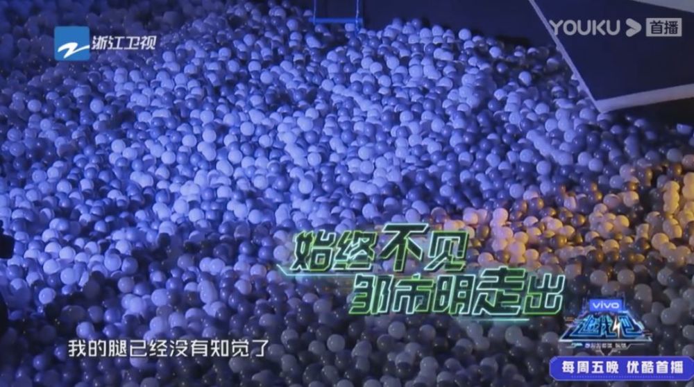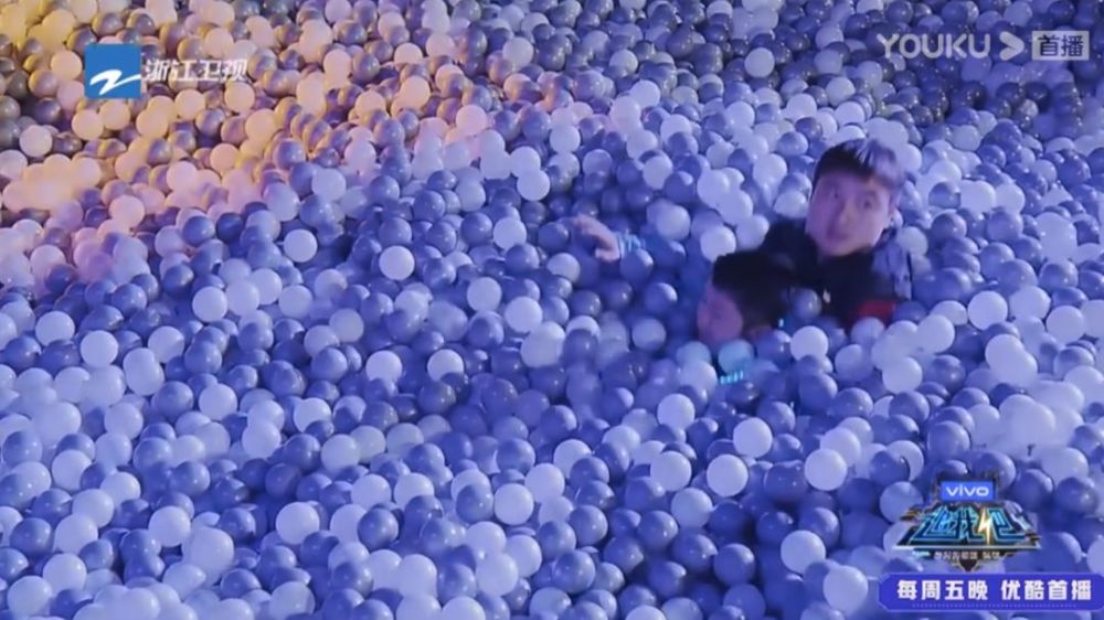 邹市明不慎掉入海洋球堆内,一开始还能露出头和手