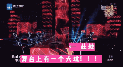 跨年演唱会,舞台上还出现了一个巨大的黑洞,好在陈伟霆从旁边绕过。
