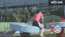 同样是跑酷竞速闯关类节目,“向前冲”的氛围就非常轻松,这档节目以素人选手闯关为卖点,观众“最大的乐趣”就是看到素人一不小心掉入水中。