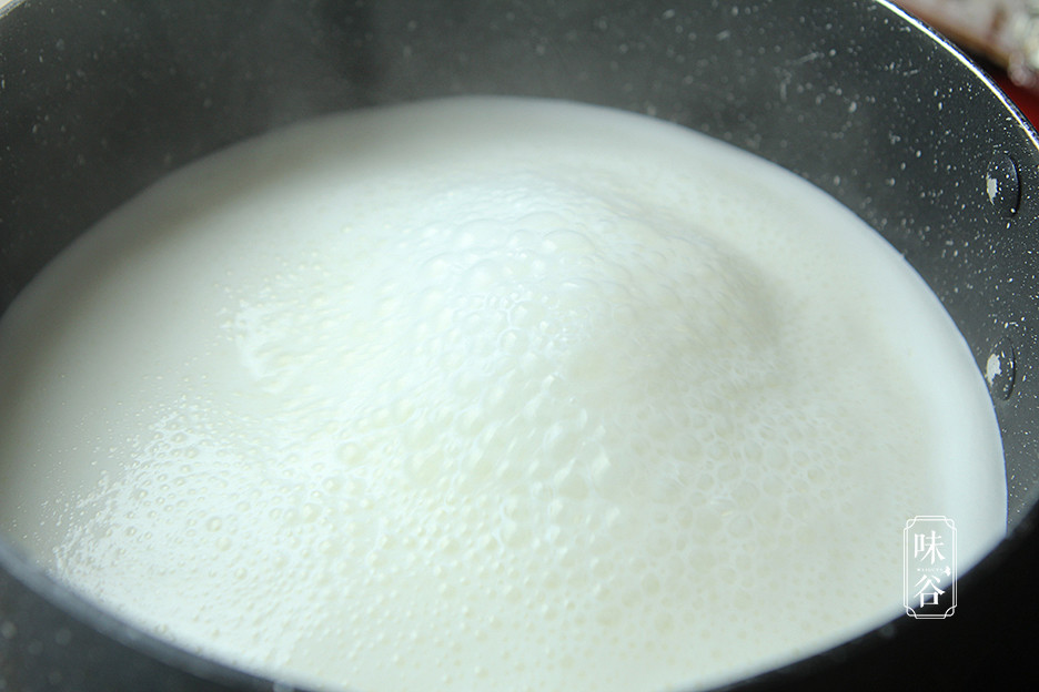 2、牛奶一定要文火煮,大了容易扑出来,煮到咕嘟咕嘟冒小气泡,70度左右,这个温度凝固更好,如果超过80℃,蛋白酶就失去活性了,不容易凝固。