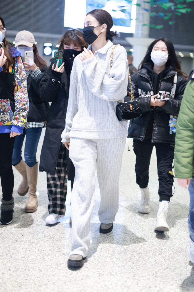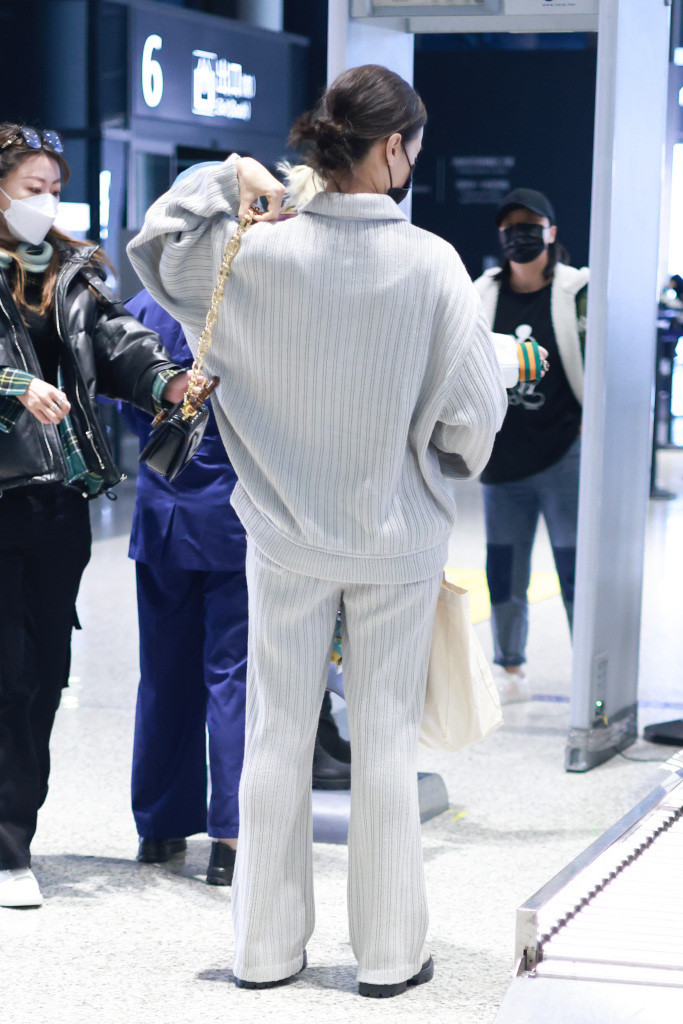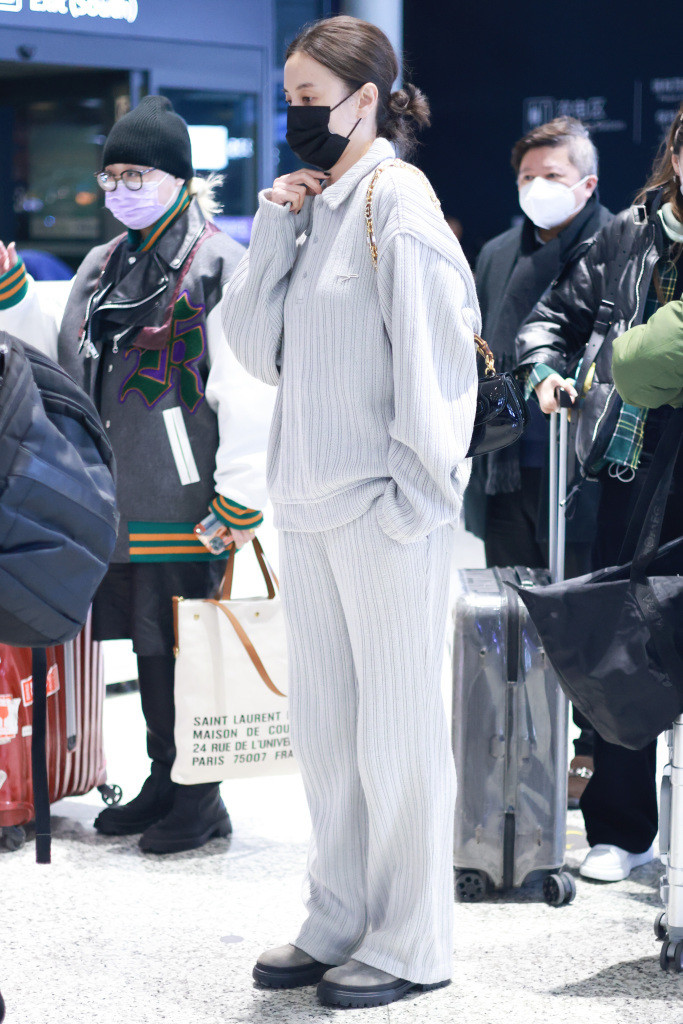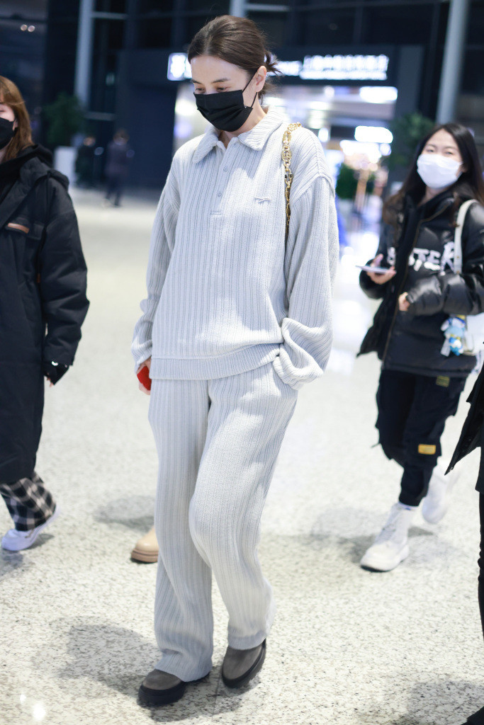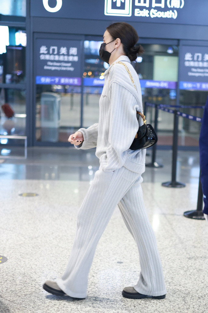 休闲套装看似简单随性不挑身材,但其实最考验穿搭者的气质与身高,宽松的服装罩在身上只会暴露更多不足,例如微胖的人会显得壮实不够精致,个矮的人会显得邋遢不够时尚,最简单最普通的服装才是做考验穿搭者身材的。宋佳个子高气场强轻轻松松驾驭休闲套装,单手插兜现身机场有种女大佬的气场,简单的低丸子头看起来颜值很高,灰蓝色显得低调有大气,完美展现了时尚但又松弛的穿搭氛围,慵懒随性的穿搭反而更加显气质。