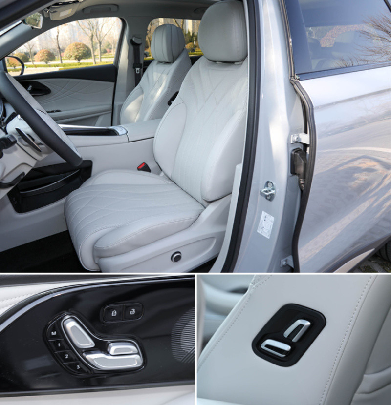 接下来就是比两驱舒享版要贵上1万元的两驱优享版了,这也是我最推荐购买的一款车型了。外观方面首先换上了20英寸轮圈,让车辆更有气势,轮圈造型也采用了低风阻装饰罩,颇有电动车的感觉。而两驱优享版主要的配置提升还是在舒适性方面,主驾座椅从6向电动调节提升为了12向电动调节,副驾座椅也从4向电动调节提升为10向电动调节,由此副驾座椅升级成了我们熟悉的“女王副驾”。而在座椅功能方面,两驱优享版还增加了前排座椅加热/通风、副驾座椅按摩以及主驾电动座椅记忆,可以说使得座椅舒适性有了本质的提升。至于智能配置和安全/辅助配置方面,两驱优享版也有一定的升级,面部识别、HUD抬头显示和疲劳驾驶提醒都是两驱优享版增加的配置。价格上涨了1万元的两驱优享版车型使得车辆的舒适性有大幅提高,因此是我最推荐购买的车型。