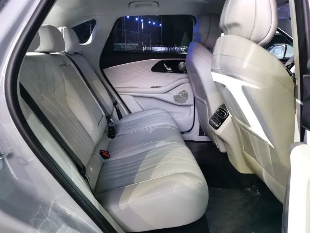 来到车内先看大家最关心的后排空间。溜背设计的车顶并没有太多影响头部空间,而超过2.8米的轴距,也使得腿部空间十分宽裕,加上全景天幕和规则的后窗,使得乘客拥有不错的开扬感。