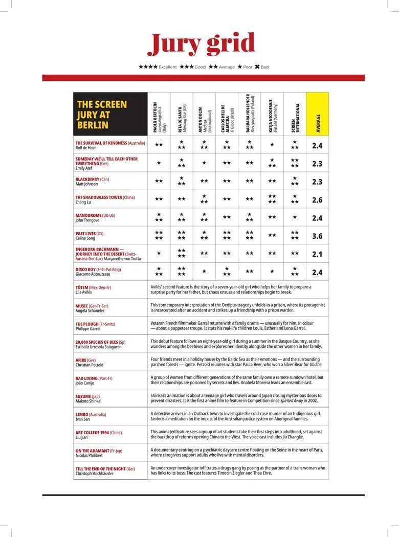 第73届柏林国际电影节主竞赛单元主竞赛场刊评分