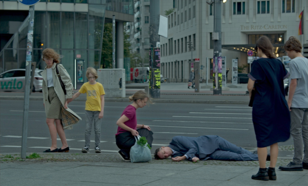 上个镜头女主角躺在草地上休息,下个镜头就是三十年之后的另一家人(《梦中小径》);上个镜头还在法国海边,下个镜头就到了德国的街上(《马赛》)。观众对时空的“大跃进”总是后知后觉。《音乐》里也不例外,拍摄地横跨希腊、法国、德国,如果不熟悉欧洲城市很容易跟不上影片跳跃的节奏。在影片开头的十几分钟里,几乎每个镜头都介绍与上一个不同的新的地点、新的人物:一个男孩在山腰受伤了。一个婴儿在羊圈出生。一伙年轻人去海边游泳。这个婴儿和这伙年轻人中的一位脚踝都有伤。这个年轻人意外杀死了他的同伴Lucian。不久后我们从一通电话中得知,Lucian是七年前死的——时间在镜头之间以难以察觉的速率跃进。或许可以援引萨特对《局外人》的评述:“句子干净利落,没有瑕疵,自我封闭;它与下一句之间隔着一片虚无……一句话好比一座岛屿。我们从句子到句子,从虚无到虚无跳跃前进。“夏娜莱克以异常冷峻和间离的方式演绎了现代版本的俄底浦斯故事。
