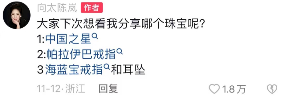 向太也深谙大众心理,会在线询问网友想看哪些价值连城的珍宝。