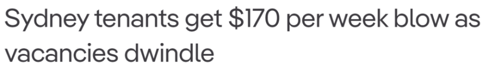 目前的租金也比一年前高出约170澳元/周(29.6%),当时悉尼房屋的一般租金约为575澳元/周。这相当于一年增加了约8800元。