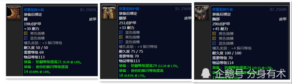 厚重裂蹄三件套:厚重裂蹄套装是熊德,t4团本前毕业装备,装备属性以高护甲高耐为主,非常适合熊德,因为小德在变成熊形态之后,护甲值能提升400%耐力能提升25%。3件套又都是黄色和蓝色宝石槽,还可以打不少耐力宝石,非常推荐熊德玩家前期购买厚重裂蹄三件套。