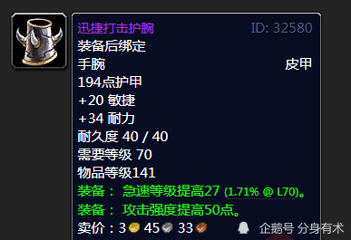 迅捷打击护腕:这件装备性比价极高,虽然没有盗贼的t6护腕好,但是t6护腕可是太阳井高地卡雷苟斯掉落的,黑暗神殿离开放太阳井高地,至少离了大半年时间,在一点就是2.43版本的太阳井高地难度还是挺高的,所以t6护腕价钱会非常的高。