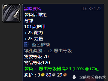 黑暗披风:这件披风图纸需要紫罗兰声望崇拜才能购买,前期狂暴者和惩戒骑都挺不错的,怀旧服有一个双手持卡的职业,那就是狂暴者。因此这件披风在前期销量会非常不错,想赚金的玩家,可以第一件时间,把紫罗兰之眼声望刷到崇拜。