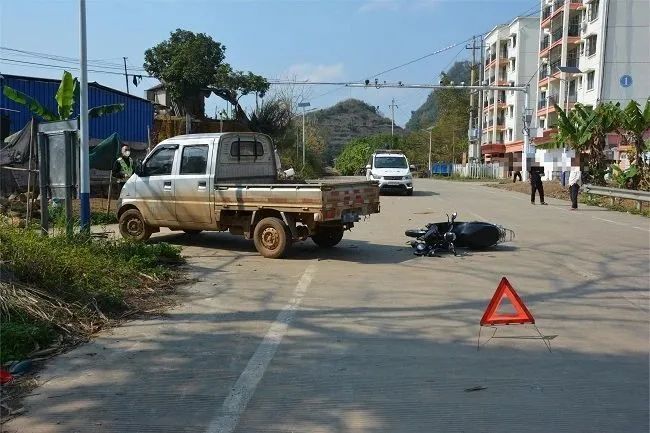 2023年02月12日10时30分,朱某驾驶桂F****9号“五菱”牌轻型栏板货车,由龙州县城方向往科甲口岸方向行驶,车行至龙州县辖区G219线9671公里700米处路段,适有邝某,驾驶无号牌两轮轻便摩托车对向行驶,朱某驾驶车辆左转弯往隘口方向行驶时双方车辆发生碰撞,造成邝某受伤、双方车辆损坏的道路交通事故。