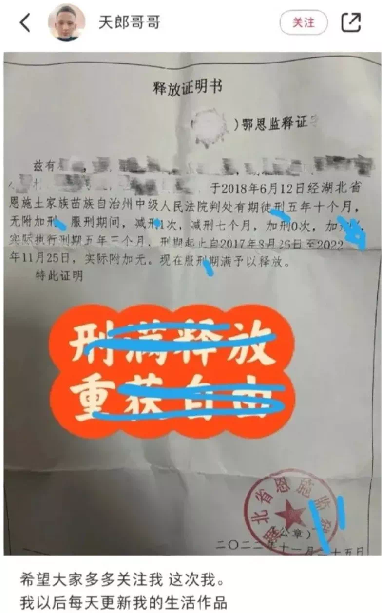 “刑满释放”之于他们,只是一个挣快钱的流量标签。