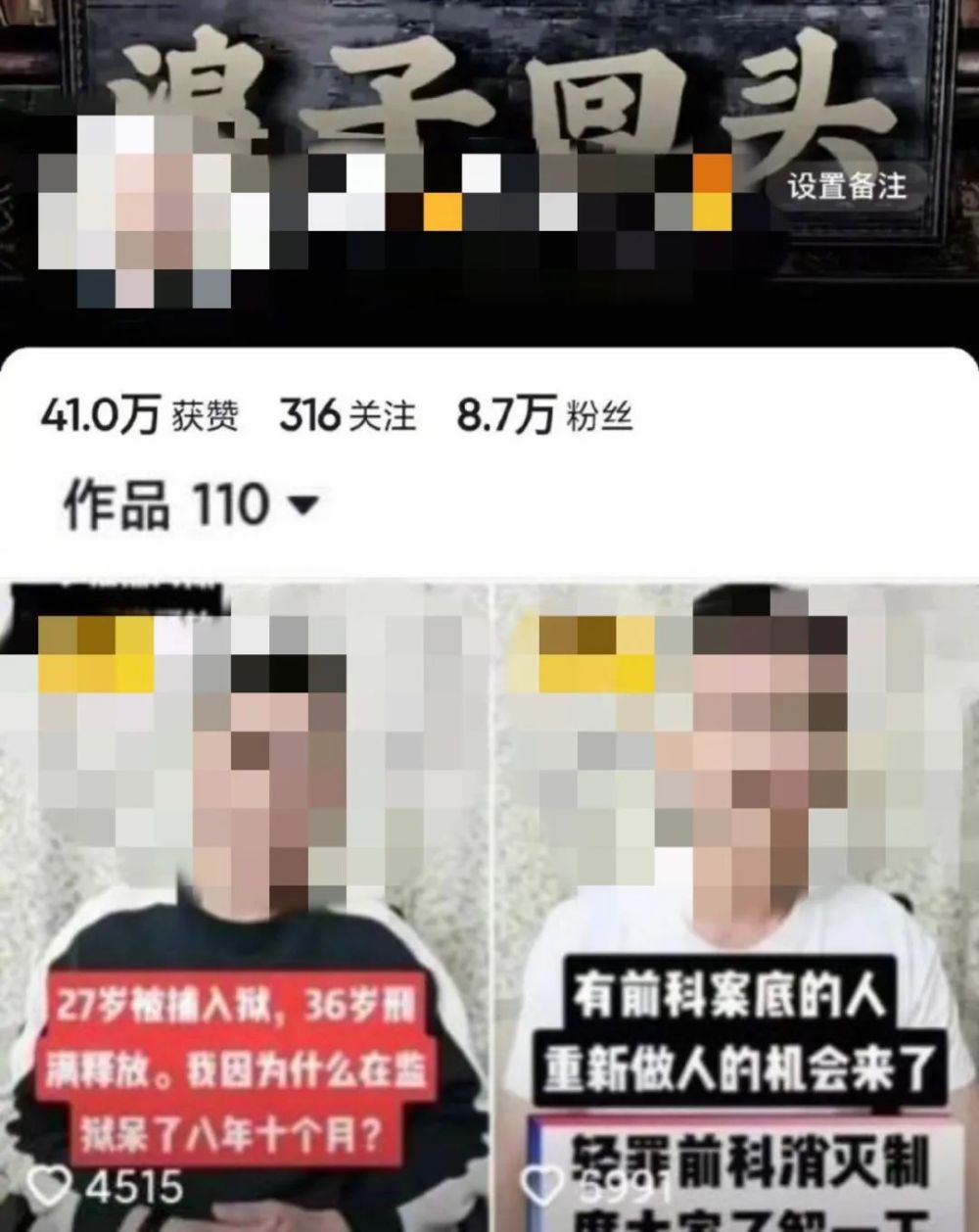 在某音上,这些讲述服刑经历的大哥大姐,都是励志典范,金盆洗手、浪子回头的叙事永不过时,永远令人着迷。