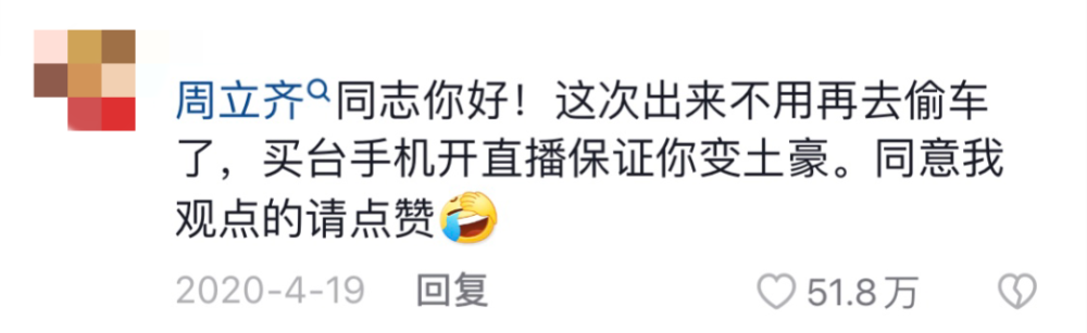 “出来不用去偷车了,买台手机开直播保证你变土豪。”