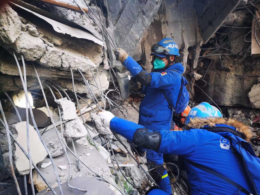 “我伸手触摸,虽然没有摸到动脉的跳动,但从触感和皮肤颜色,我感觉孩子还有希望!”随即,要进召钻出来和大家一起制定了一套相对稳妥的方案后,通过支撑与破拆,挖出了一方可以容纳两个人的空隙,“我和陈小平钻进去以后才发现,孩子的屁股被楼梯扶手压着,而扶手上面还承担着三层楼梯的重量!”