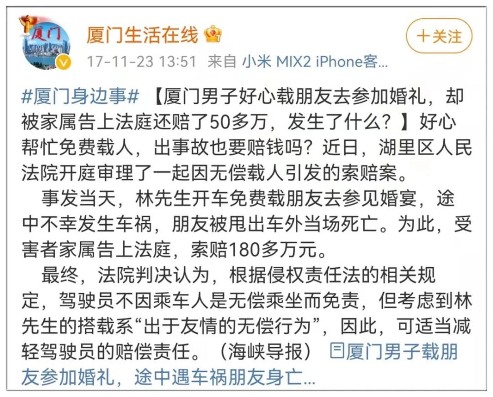一、男子好心载朋友去参加婚礼,却被告上法庭还赔了50多万