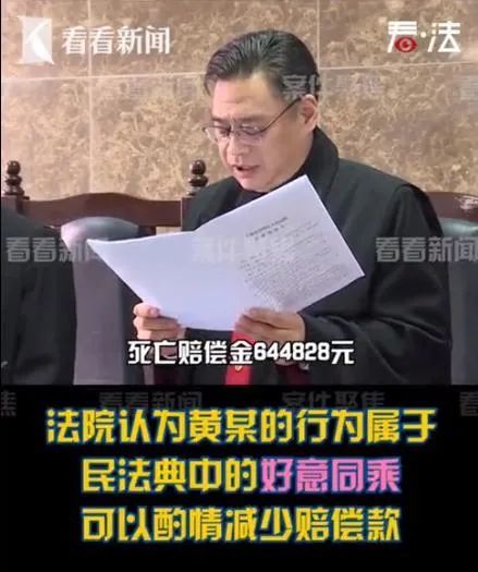经过崇明法院合议庭讨论,鉴于黄某好意同乘的行为,结合本案实际情况,酌情减少黄某五万元赔偿款。法庭做出了一审判决,被告黄某赔偿原告徐某死亡赔偿金644828元。