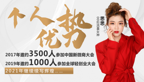 在轻创业风潮来袭的2019年,她再次用一部手机邀约1000人参会续写行业传奇,获得业内人士的一致好评;2020年疫情的影响,让线下更大程度被推到了线上,思思将更多的心思放在了去引流去维护客户,等到春暖花开后,自己一定又能闯出全新的一片天地。