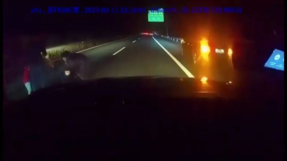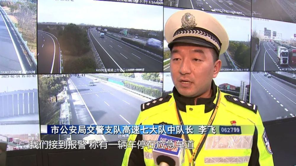 我们接到报警,称有一辆车停在应急车道,旁边有人在行走,当时非常危险。