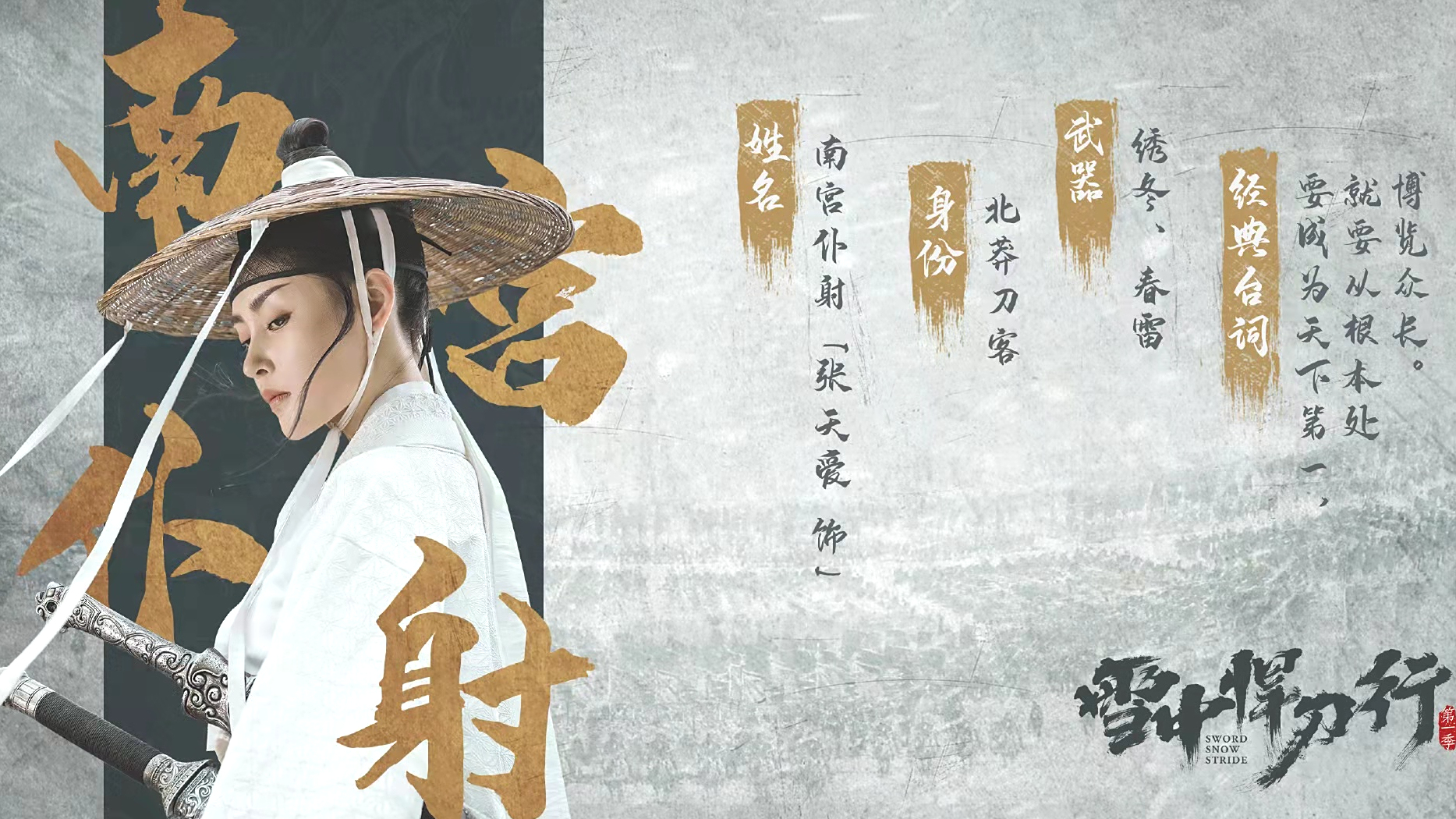 原著中南宫仆射是标准的瓜子脸,扮演者张天爱也是。不仅如此,戴着斗笠,白衣飘飘的张天爱出场时卓然的气质,也特别符合南宫仆射巾帼不让须眉的形象。感觉有点像林青霞版的“东方不败”,惊艳的造型有没有让你心动呢?