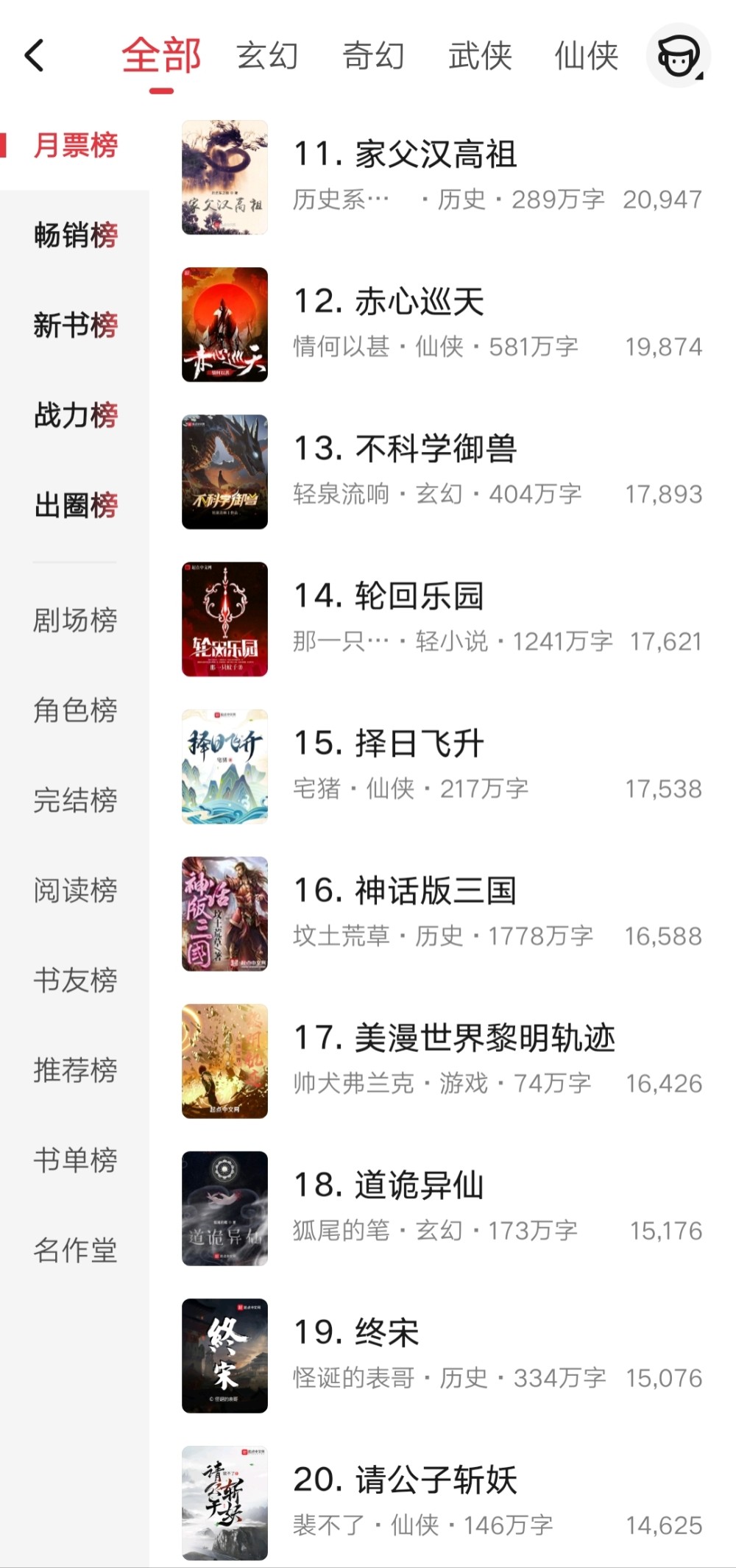 首日之后,日更新也保持在一万五千字左右,这真的是一力降十会,凭借着爆更将排名快速拉上来了。