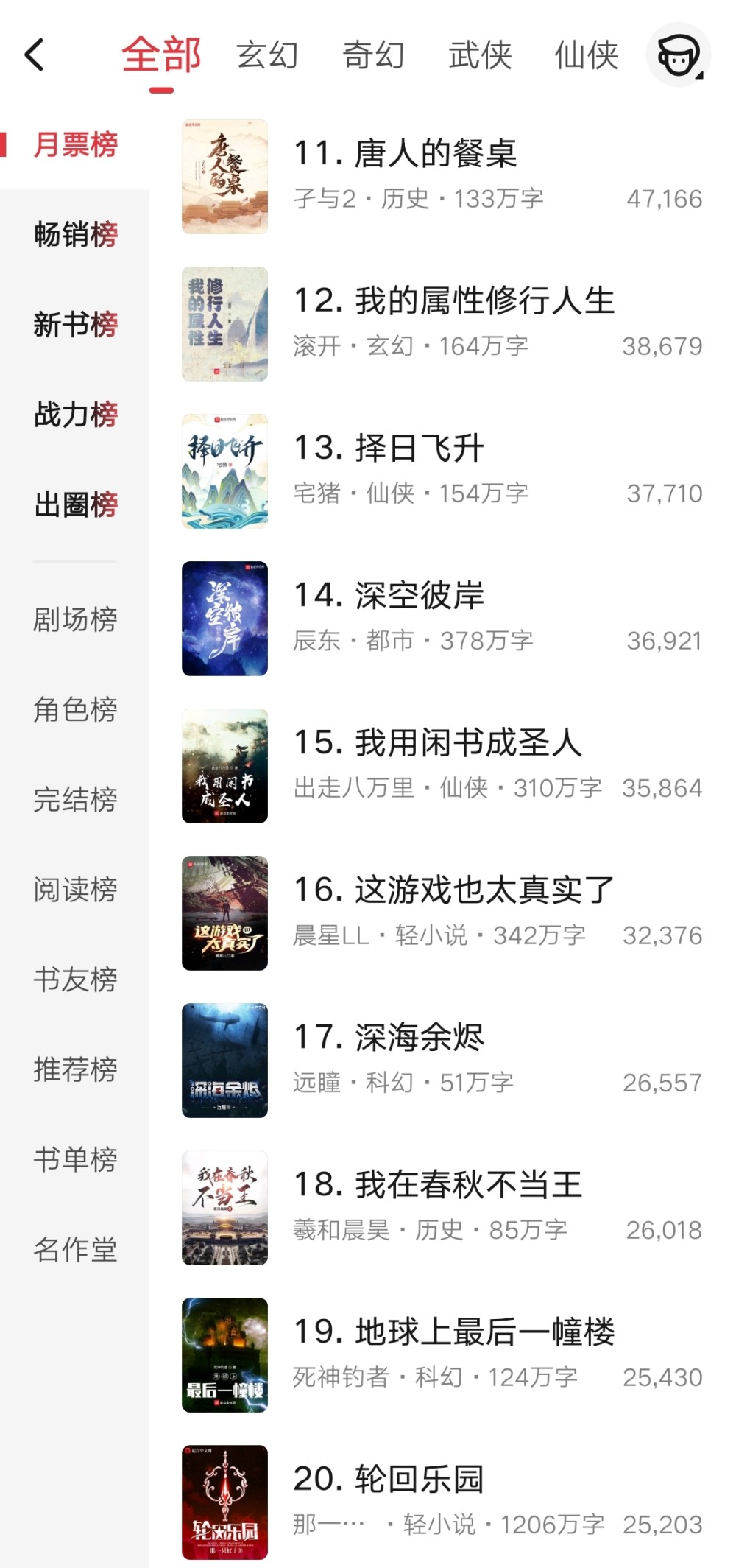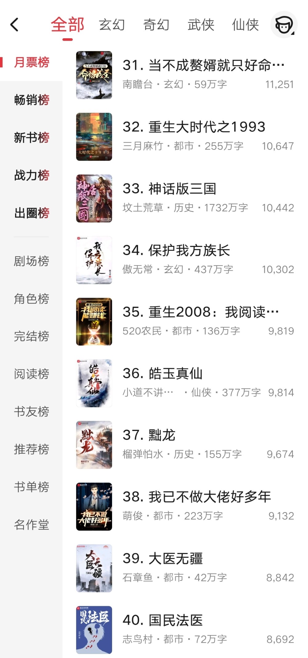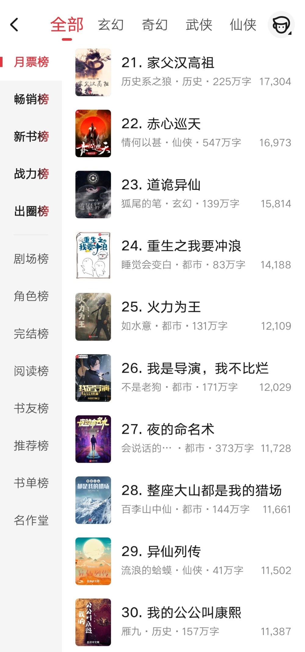 以上就是这周月票榜前五十名的一个情况了,希望其中有你十分支持的作品吧。
