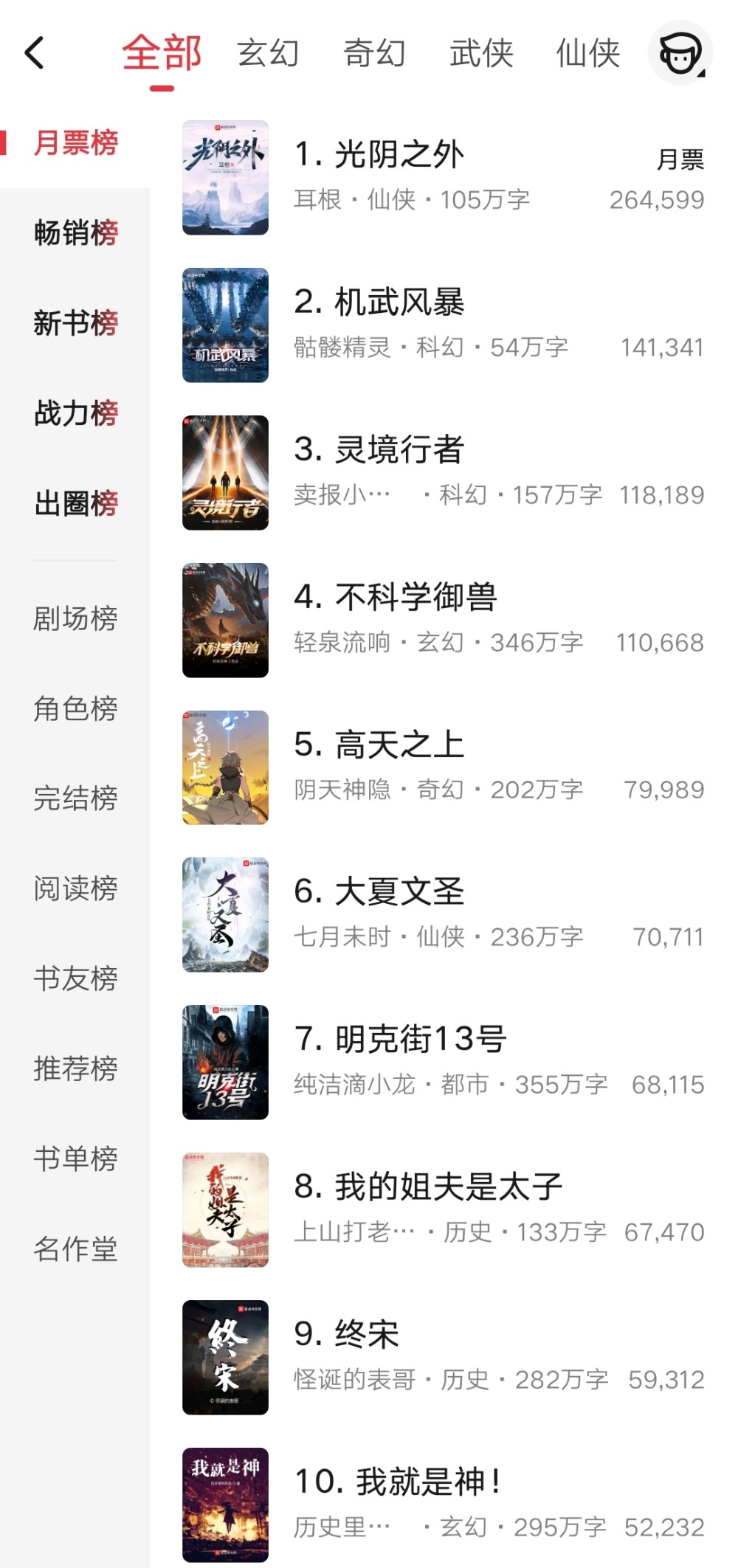 十月的第三个周末来了,还是按照习惯来看看这周的起点的一些情况。首先来看看月票榜的排名变化。