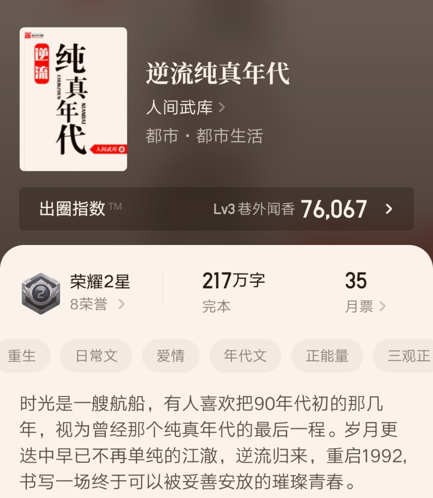 1、《逆流纯真年代》217万字完本
