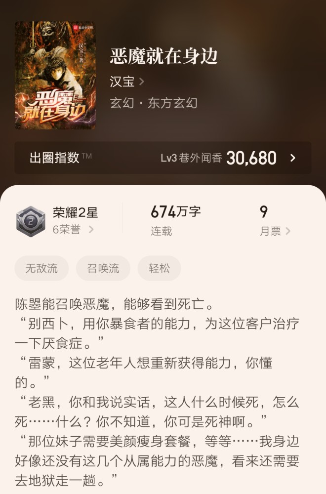 6、《恶魔就在身边》674万字停更中