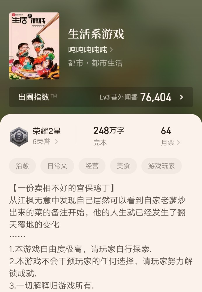 7、《生活系游戏》248万字完本
