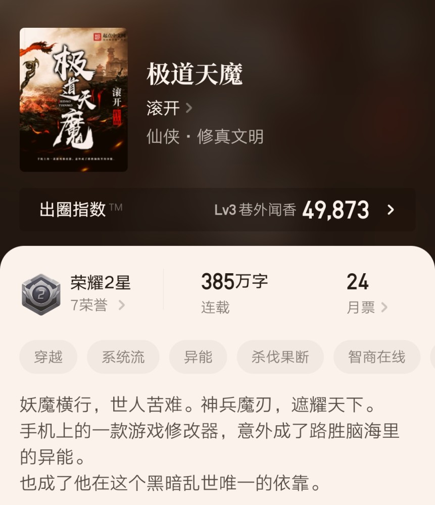 手机访问:wap.265xx.com极道天魔、白袍总管等七本均订破万的2星小说推荐,你都看过哪些呢?