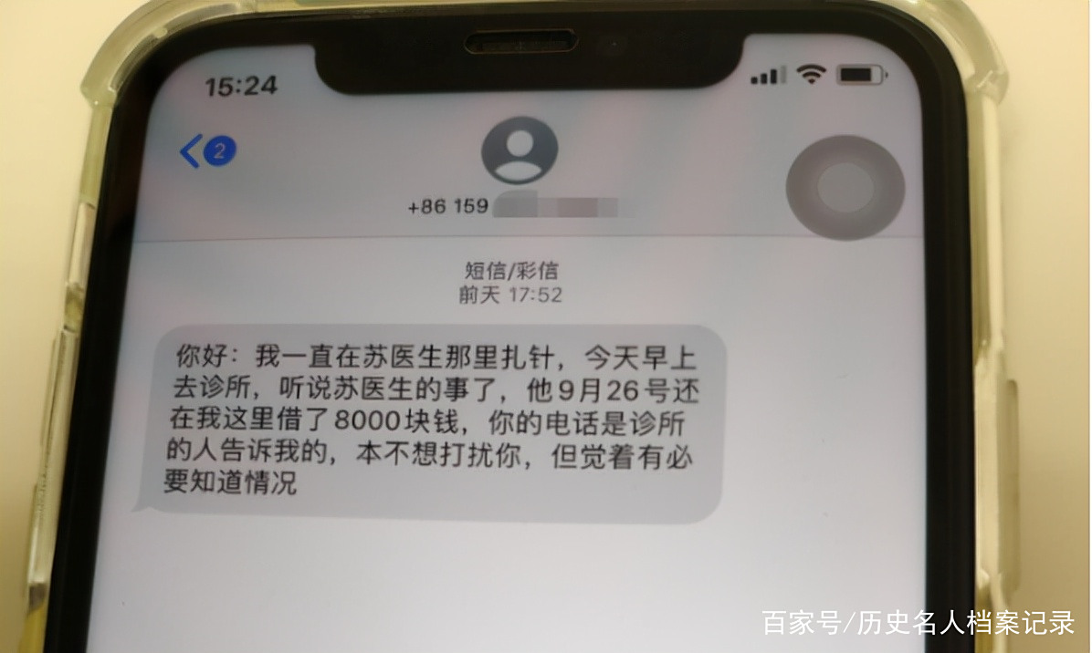 借钱给苏的患者发的短信