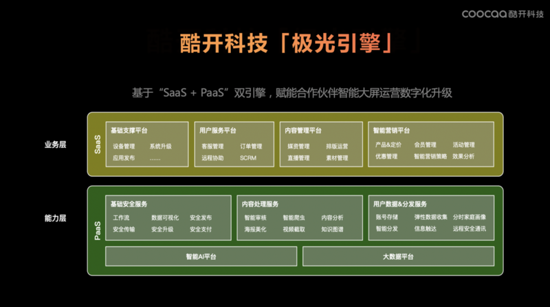 以上讲的都是基于家庭场景的服务,实际上在我们的生活中,屏幕无处不在,而酷开科技可以通过积累的这些自动化运营能力去服务更多场景下的屏幕,包括车载场景、商用场景、投影娱乐场景等。