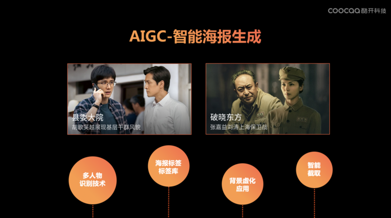 从智能海报说起,我们可以根据用户既往的点播行为和数据,利用多人物的识别技术、标签以及背景虚化的应用、智能截取等技术,向用户推送符合他个人喜好的海报。