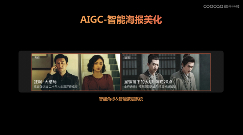 在提升用户触达转化上,AI桌面也发挥着重要作用。「极光引擎」会根据媒资热度排行,在首页填充一部分当前热门媒资内容,如最近大热的《狂飙》、《显微镜下的大明》。同时,也会根据精准用户画像以及用户偏好分析,从海量媒资中智能关联筛选差异媒资内容,为不同用户自动化生成千人千面的AI桌面。进一步地,针对不同年龄群体在观影体验上的差异需求,「极光引擎」还可以自动化生成多种AI桌面模式选择。如果家里是老人在观看电视,就可以开启陪伴模式,自动化加大字体,更简洁的操作界面带来贴心的体验。