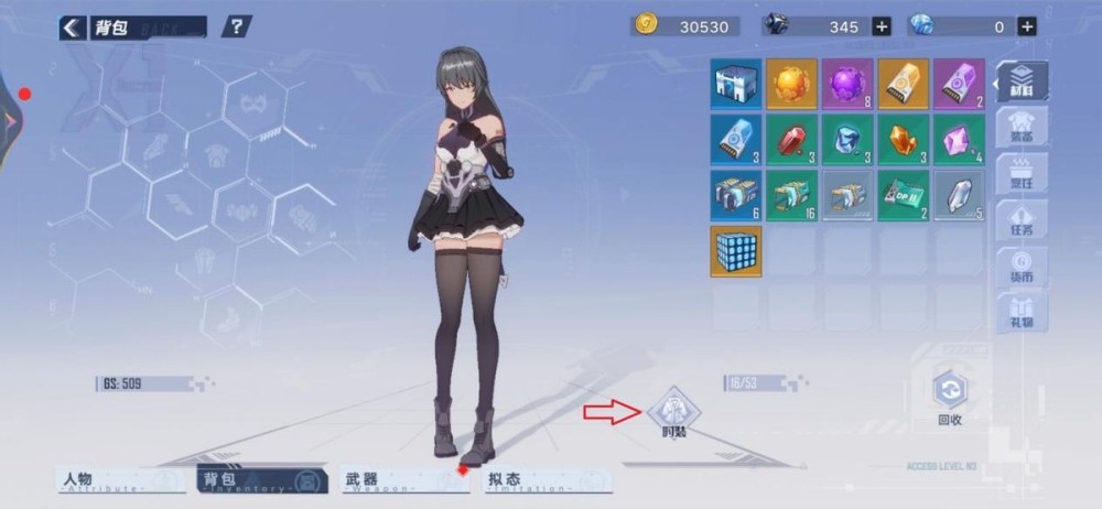 2.进入背包功能后,选中时装功能。