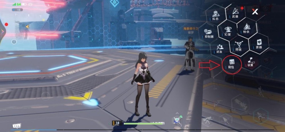 1.打开菜单页,选中背包功能。