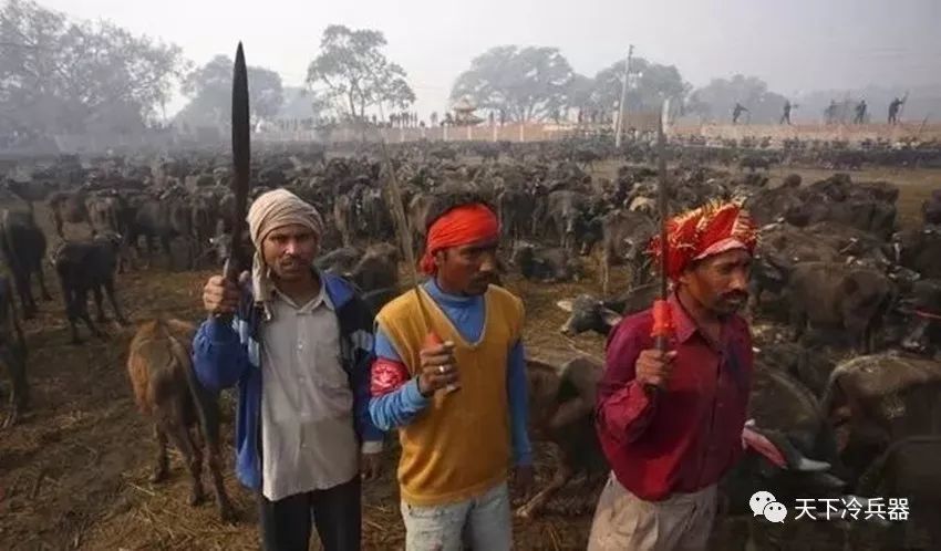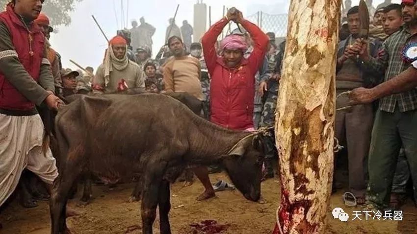 这是信徒举行的祭祀活动,每年牲畜的祭祀数量达到十万。而活动的执行者,就是这把尼泊尔弯刀。