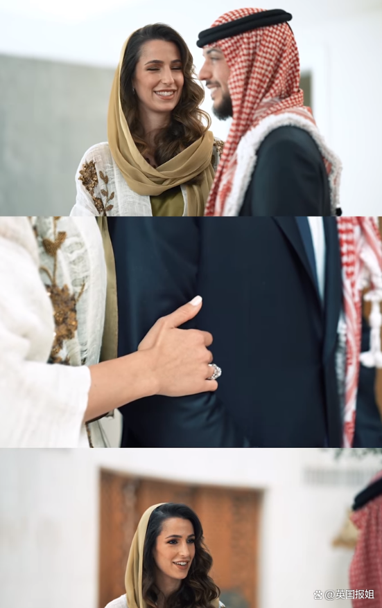在订婚仪式上,侯赛因和拉吉瓦之间的互动也很有爱,牵手拥抱、交换戒指都能让人感觉到真情流露。