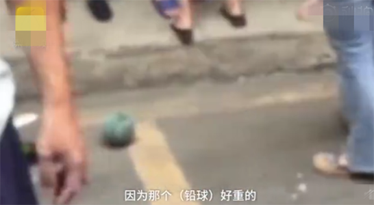 只见地上滚着一个很大的铅球,原来这个铅球是一个四五岁的孩子在楼上玩的时候不小心扔下来的,车主表示,他的挡风玻璃即使加了防爆膜,还是被砸坏了。