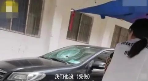 一辆小车停在小区门口,车主正准备下车的时候,只听到巨大的“砰!”的一声,车主当场就懵了,仔细一看,自己的挡风玻璃被砸出一个很大的洞来,司机赶紧下车查看情况。