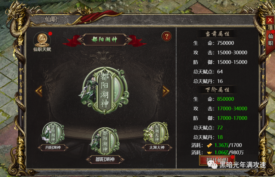 大家好,欢迎来到【黑暗光年满攻速】,今天小编为大家带来的是黑暗光年攻速版游戏中仙职系统的相关玩法介绍,接下来就跟着小编一起来了解一下吧!