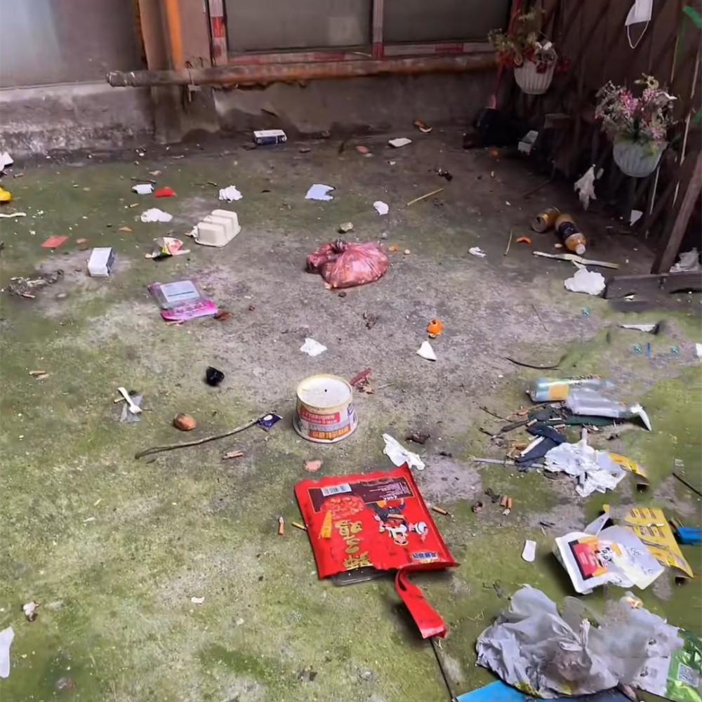 最后只能无奈放弃了布置露台,上图是她一个多月没打扫的样子,可以看到露台上都已经遍地是垃圾。