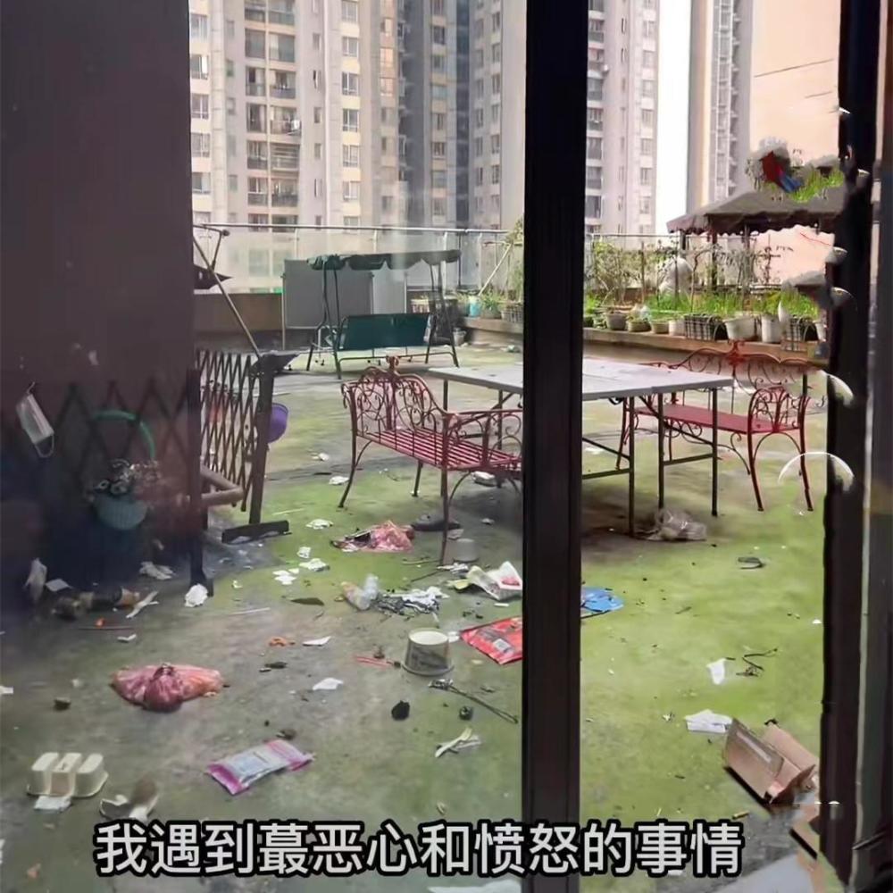 纸巾、快餐盒等等垃圾,一堆堆掉到精心布置的露台,每天打开门就是打扫卫生,看到这一幕也会闹心。